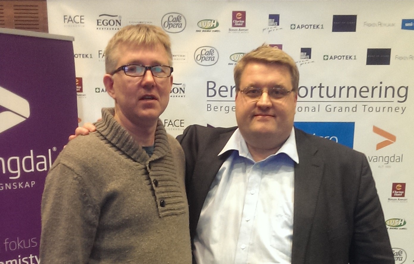 Gratulerer med nok en sterk seier til Sam Inge Høyland, denne gangen i par med Trond Hantveit. Paret har en rekke sterke resultater de siste årene. Takk til Markus Bruno som har sendt med spill og bilder til DENNE REPORTASJEN FRA BERGEN STORTURNERING 2014 RESULTATER ELITE og RESULTATER A
