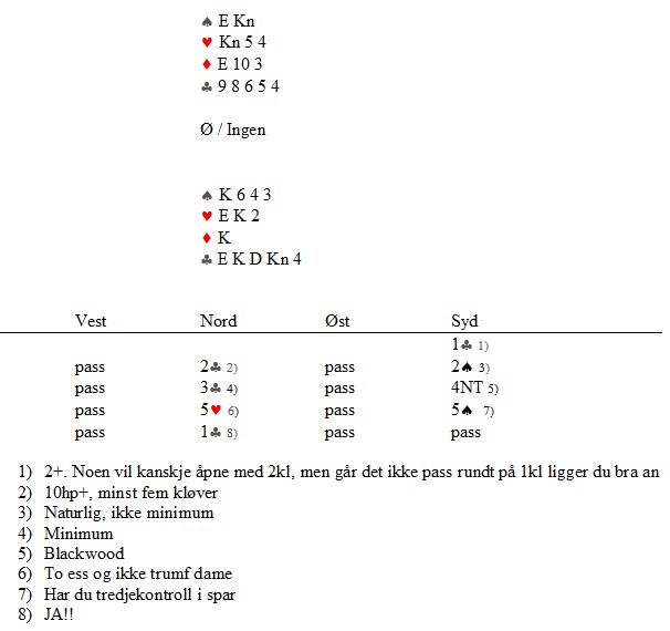 Det er vel ingen som spiller noe annet enn RKC-Blackwood lenger og jeg antar denne svarskalene på 4NT er kjent for alle. 4NT: 5kl = 0 eller 3 ess (av fem)