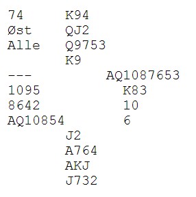 Det løsna for Austberg - Berg i den siste sesjonene, men som Jan Tore sa, "Da var det desverre slutt.." I nest siste runde kom dette spillet.