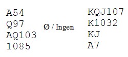 Denne gangen får du se bare NS sine hender. Øst spiller ut ruter konge. Hva er planen?