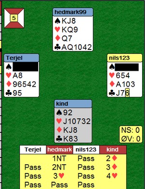 Jeg spør hva som er målsetningen på kort sikt og da er Tromod rimelig klar. "Vi har aldri kvalla til VM før, selv om vi har vært ganske nære. Derfor er det naturlig å ha som mål å bli blant de seks lagene i EM som får være med til Venice Cup, Verdensmesterskapet for damer. Det er et hårete mål, men med maks spilling fra alle tre parene bør det ikke være noe uoppnåelig mål."