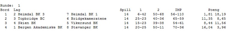 1 7 16,29 Heimdal BK 1 Livgård - Helgemo - Berg - Grøtheim - Aa - Johansen